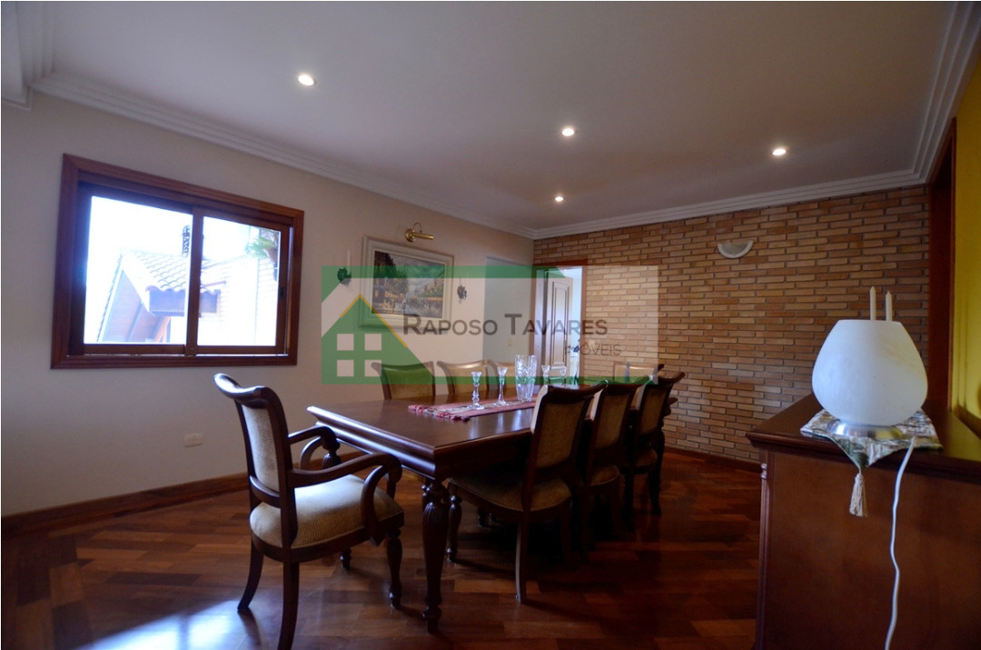 A casa conta com 4 suítes, cozinha ampla, 4 salas sendo uma com lareira, salão de jogos com uma suíte, área de serviço, dependências para empregada, piscina aquecida, área gourmet com churrasqueira.
