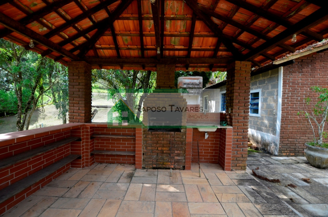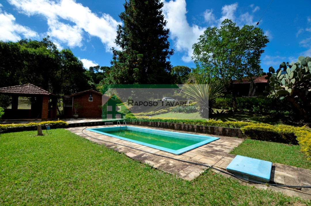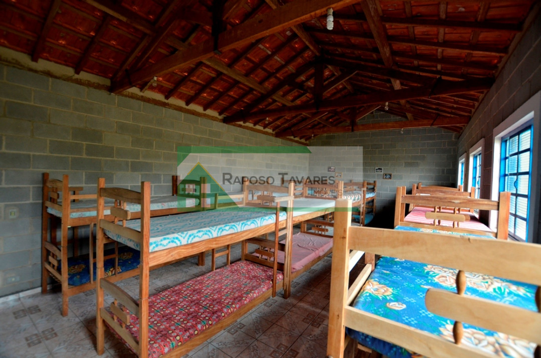 Casa com 03 dormitórios, sala, cozinha, varanda em "L", refeitório, chalé e 02 alojamentos para 50 pessoas, área de churrasqueira com fogão a lenha, forno de pizza, salão de jogos, salão de festas, casa de caseiro, piscina em fibra 4x8, riacho, campo de futebol todo cercado, quadra de cimento, belo pomar com vários tipos frutas todos produzindo, lindo jardim gramado, uma área de 1.000 metros de eucaliptos plantados, entrada do sitio toda de alamedas de palmeiras calçada em pedra e bosque.