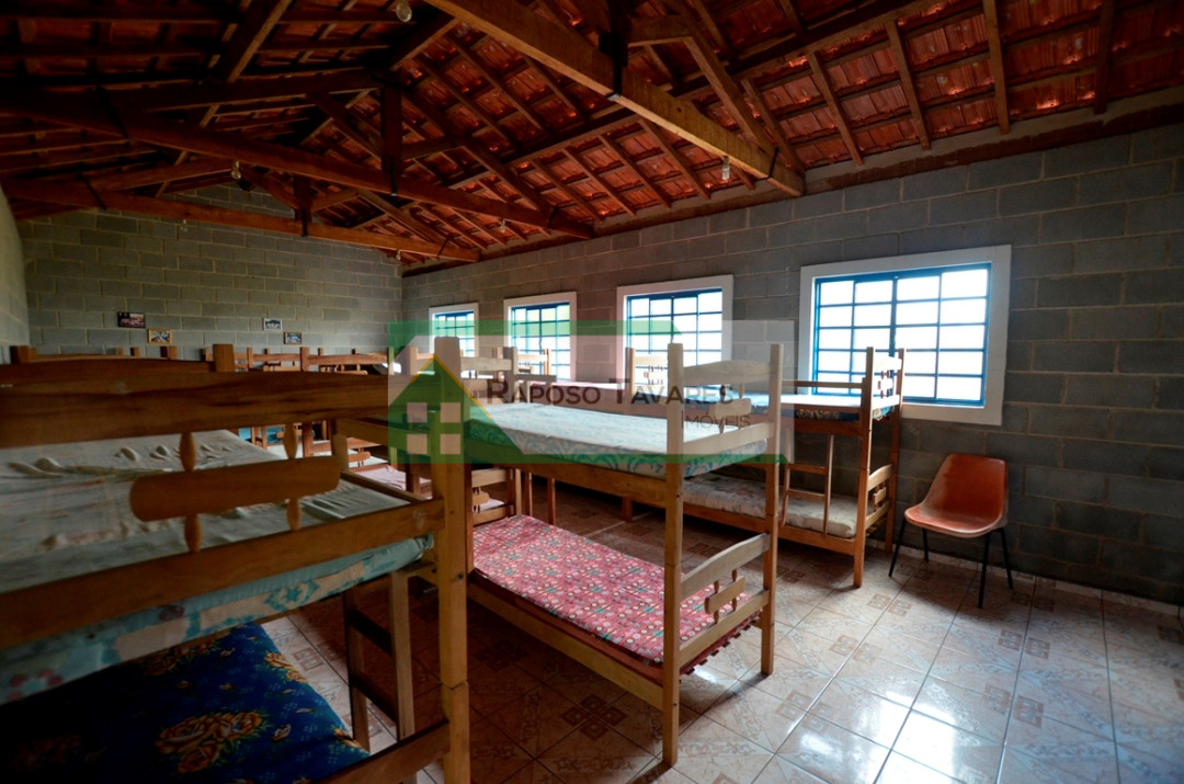 Casa com 03 dormitórios, sala, cozinha, varanda em "L", refeitório, chalé e 02 alojamentos para 50 pessoas, área de churrasqueira com fogão a lenha, forno de pizza, salão de jogos, salão de festas, casa de caseiro, piscina em fibra 4x8, riacho, campo de futebol todo cercado, quadra de cimento, belo pomar com vários tipos frutas todos produzindo, lindo jardim gramado, uma área de 1.000 metros de eucaliptos plantados, entrada do sitio toda de alamedas de palmeiras calçada em pedra e bosque.